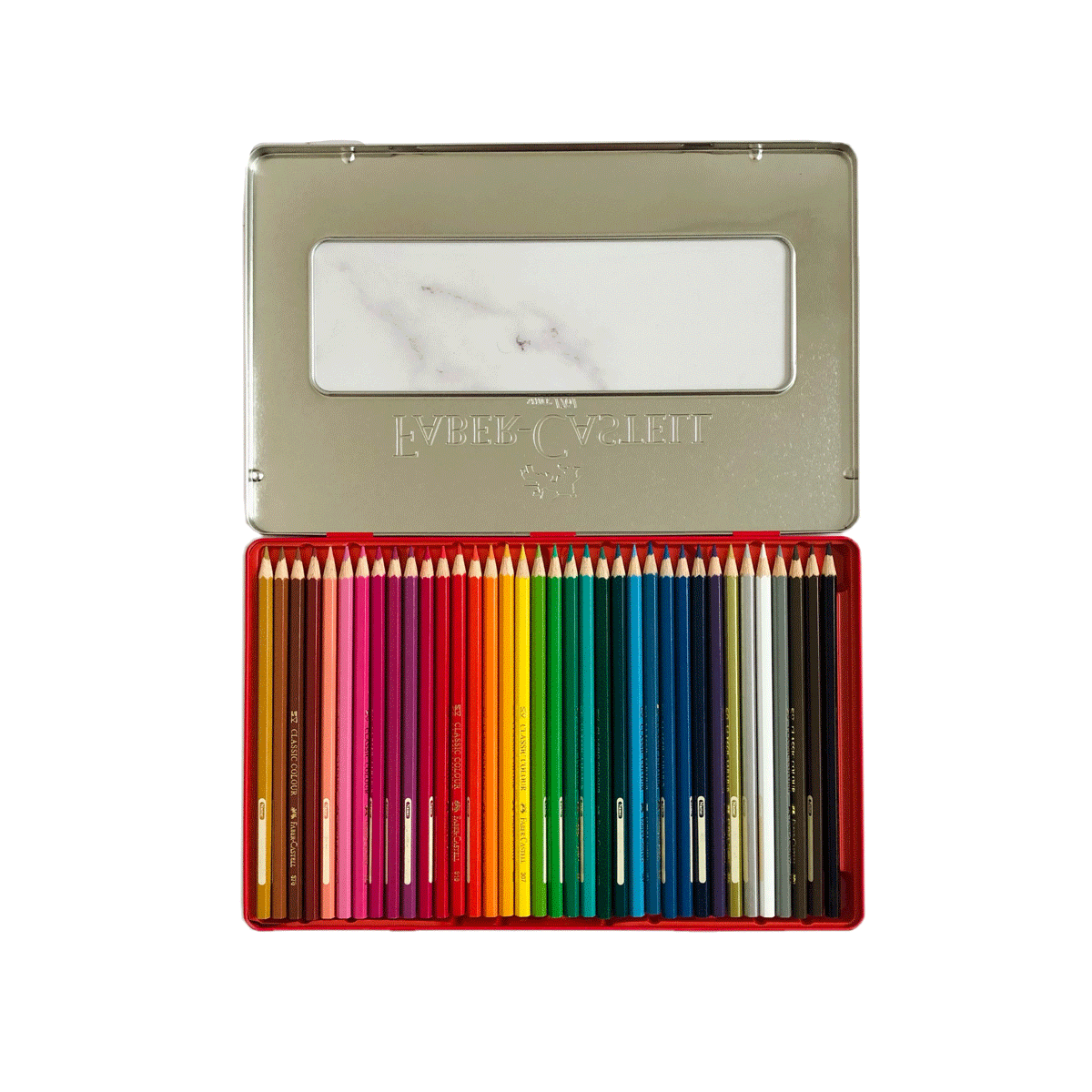 محصول پیش رو یک بسته مداد رنگی نیمه لوکس از شرکت فابر کاستل با 36 رنگ مختلف است که در جعبه فلزی عرضه شده است. جعبه فلزی قرمز رنگ این محصول با لوگوی بزرگ فابر کاستل که عبارت از سال 1761 زیر آن درج شده به خودی خود آنقدر جذاب است که به تنهایی میتواند دلیلی برای خرید آن باشد. درون این جعبه زیبا 36 مداد رنگی فوقالعاده باکیفیت قرار دارند که طبق اعلام شرکت سازنده از چوب قابل بازیافت تهیه شدهاند. در تهیه این نوع مدادها فقط از چوبهای قابل بازیافت درختان استفاده میشود و بهعنوان محصولات Eco-Pencil در بازار شناخته میشوند. مداد رنگیهای حاضر در این جعبه فرم شش ضلعی دارند. بنابراین در استفاده طولانی کمتر دست را خسته میکنند. علاوه بر این وقتی عرق میکنید از بین انگشتانتان سر نمیخورد. قطر نوشتاری نوک این مداد رنگیها 3.3 میلی متر است که استانداردترین رقم در این زمینه محسوب میشود. این مداد رنگیها تا حدود زیادی در برابر شکستن مقاوم هستند و رنگهایی درخشان از خود بر جای میگذارند.