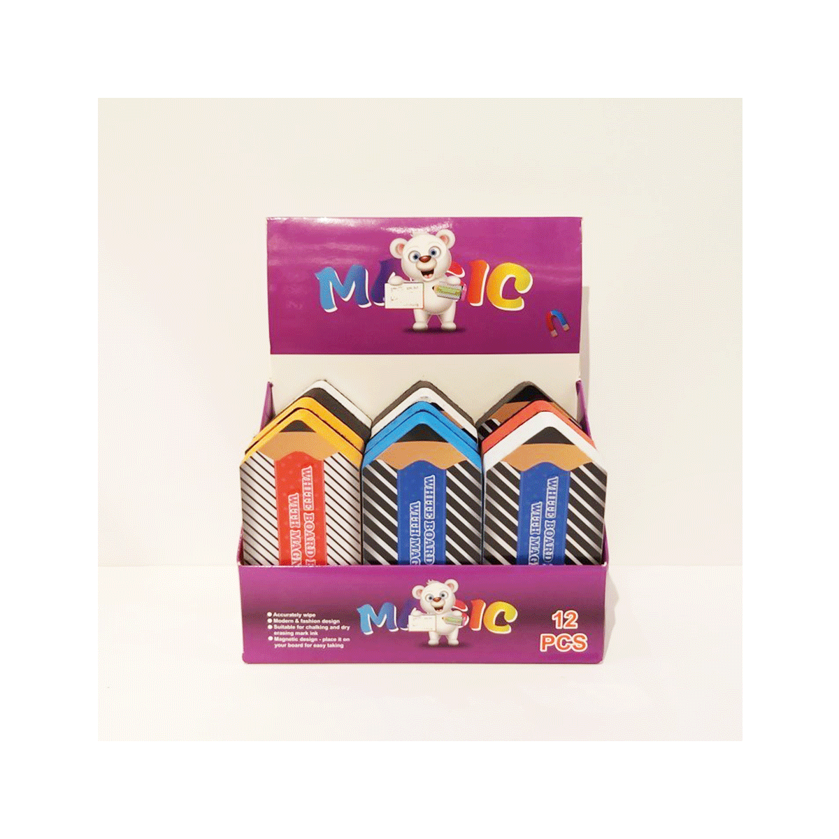 این تخته پاک کن از نوع مغنطیسی است و قابلیت اتصال به کلیه سطوح مغناطیسی و وایت بردهای مخصوص مغناطیسی را دارد